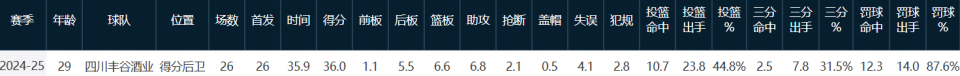 萨姆纳上赛季效力四川队,得分能力堪称CBA第一小外援,出战26场常规赛,场均上阵35.9分钟,狂轰36分6.6板6.8助2.1断,三项命中率44.8%、31.5%和87.6%,包括去年12月15至17日连续两场分别砍下53分与54分。
